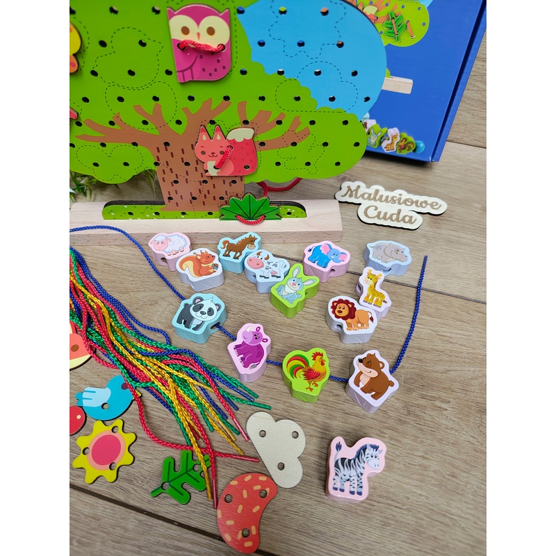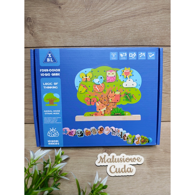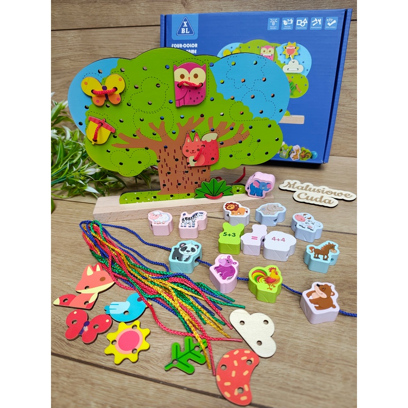 Jest to typowa zabawka sznurowanka, polegająca na nawlekaniu klocków na sznurek. Dzięki niej dziecko może ćwiczyć koncentracje oraz motorykę mała.