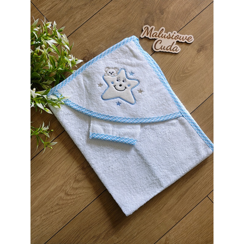 Ręcznik gwiazdka bawełna 75x75cm niebieskie obszycie