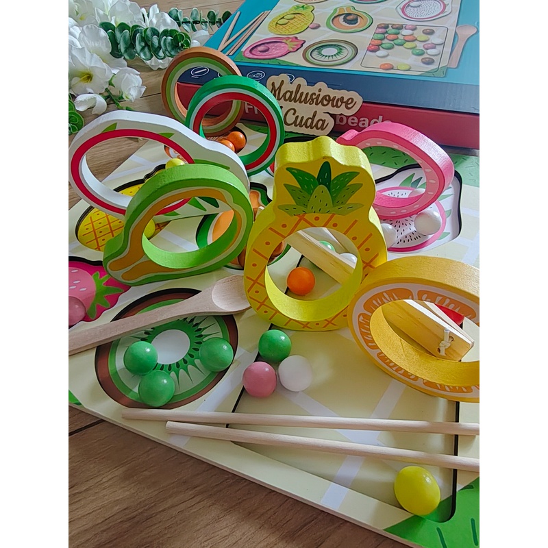 Układanka owoce z koralikami (do sortowania)