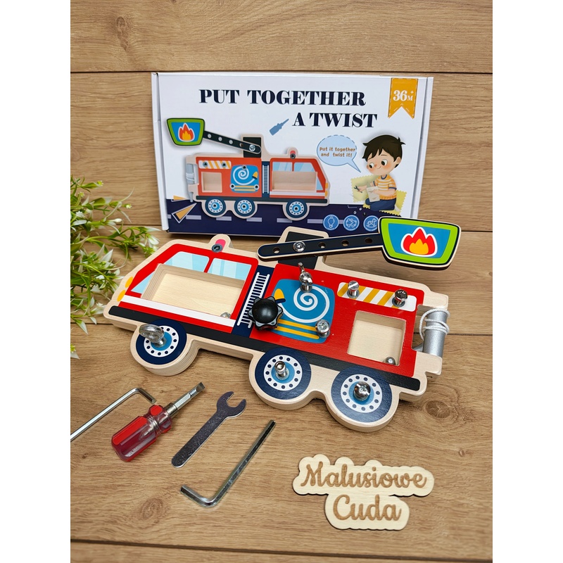 Zabawka drewniana Montessori – Wóz Strażacki: