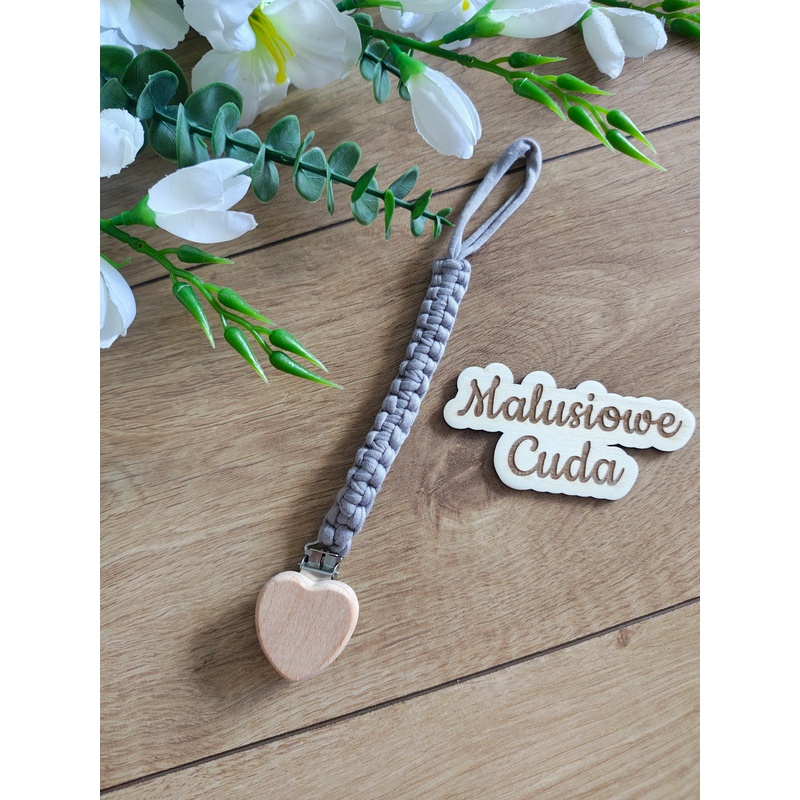 Zawieszka do smoczka – szydełkowana szara serce